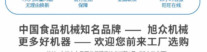 广州旭众食品机械有限公司是一家集科研开发,生产设计,营销服务为一体的现代化生产企业。现代化生产车间,精湛制造技术,所产机械历经市场重重考验,不断赢得海内外客户的赞誉。