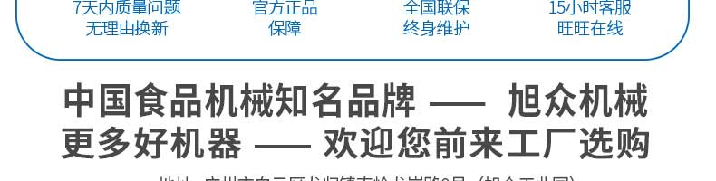 广州旭众食品机械有限公司是一家集科研开发,生产设计,营销服务为一体的现代化生产企业。现代化生产车间,精湛制造技术,所产机械历经市场重重考验,不断赢得海内外客户的赞誉。
