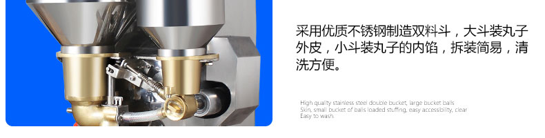 SZ-602包心肉丸机,可生产包心鱼丸、包心猪肉丸、撒尿牛肉丸、爆汁小鱼丸等多种球形酱汤类包馅产品。操控性强、稳定性高、出品率稳定;可抽皮增馅,做到皮薄馅多。