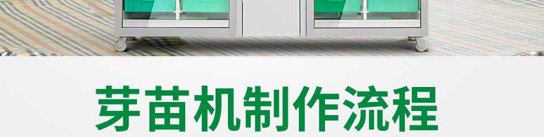 芽苗机系列,全自动芽苗机:智能化一生产安全无公害的芽苗,智能控温、定时淋水、自带照明装置,给芽苗提供一个适宜生长的温度,湿度,个人即可轻松搞定,实现每天循环生产芽苗!