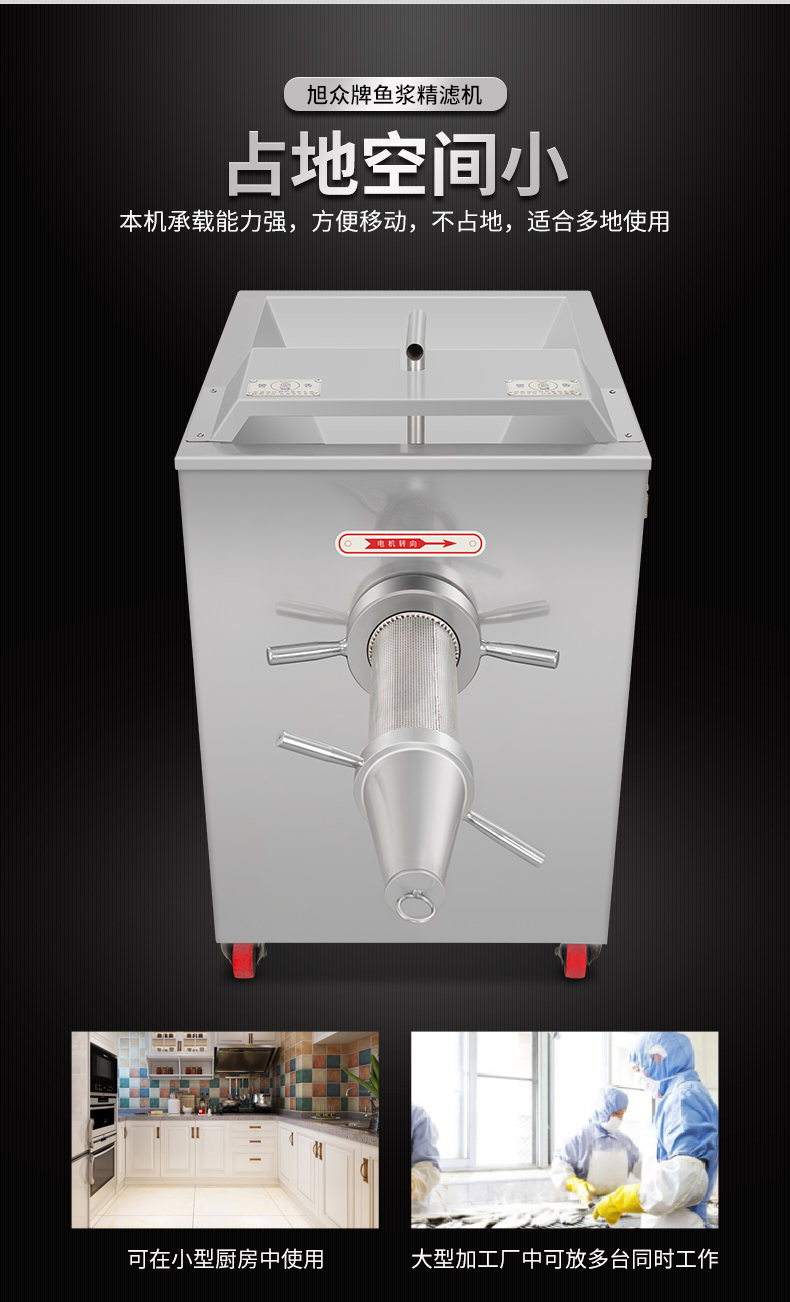 SZJ-300鱼浆精滤机,商用创业鱼浆精滤机,用于配套鱼肉采肉机进行鱼肉过滤杂质。节省人工开支,人工加工鱼浆,效率慢剔除鱼细骨,不干净,有了鱼浆精滤机,一人就可以很快制作多种鱼浆。